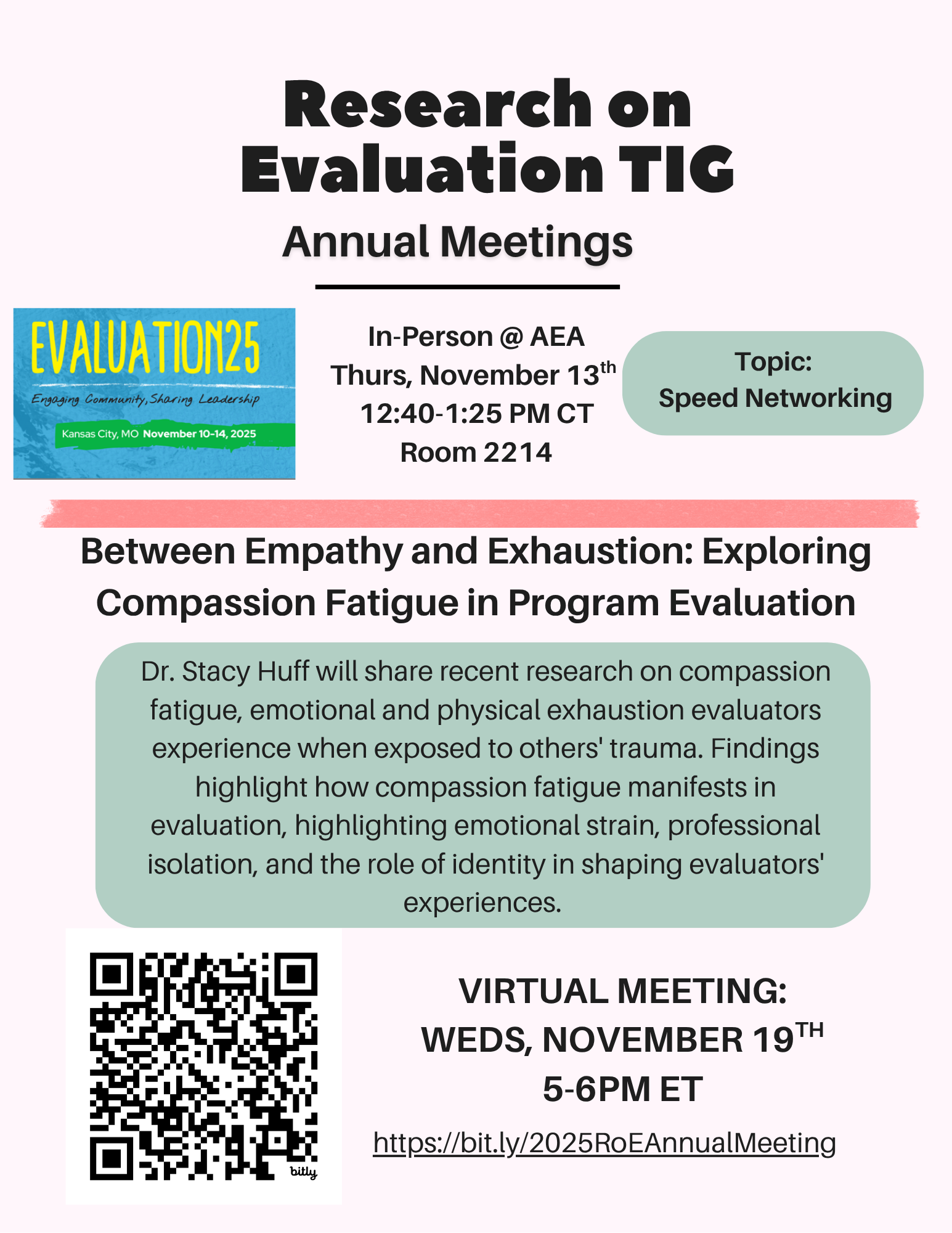 In 2019, the Research on Evaluation TIG held a number of discussions about what RoE means to the group. These two definitions and understandings rose to the top. Our understanding of what research on evaluation is (and isn't) is constantly evolving and we need your voice to help us!