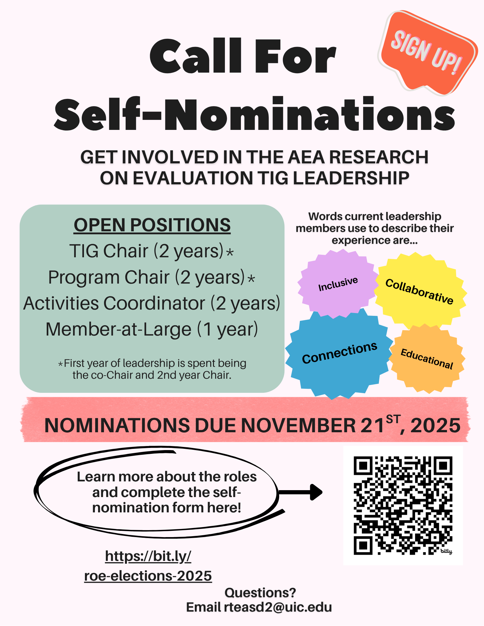 In 2019, the Research on Evaluation TIG held a number of discussions about what RoE means to the group. These two definitions and understandings rose to the top. Our understanding of what research on evaluation is (and isn't) is constantly evolving and we need your voice to help us!