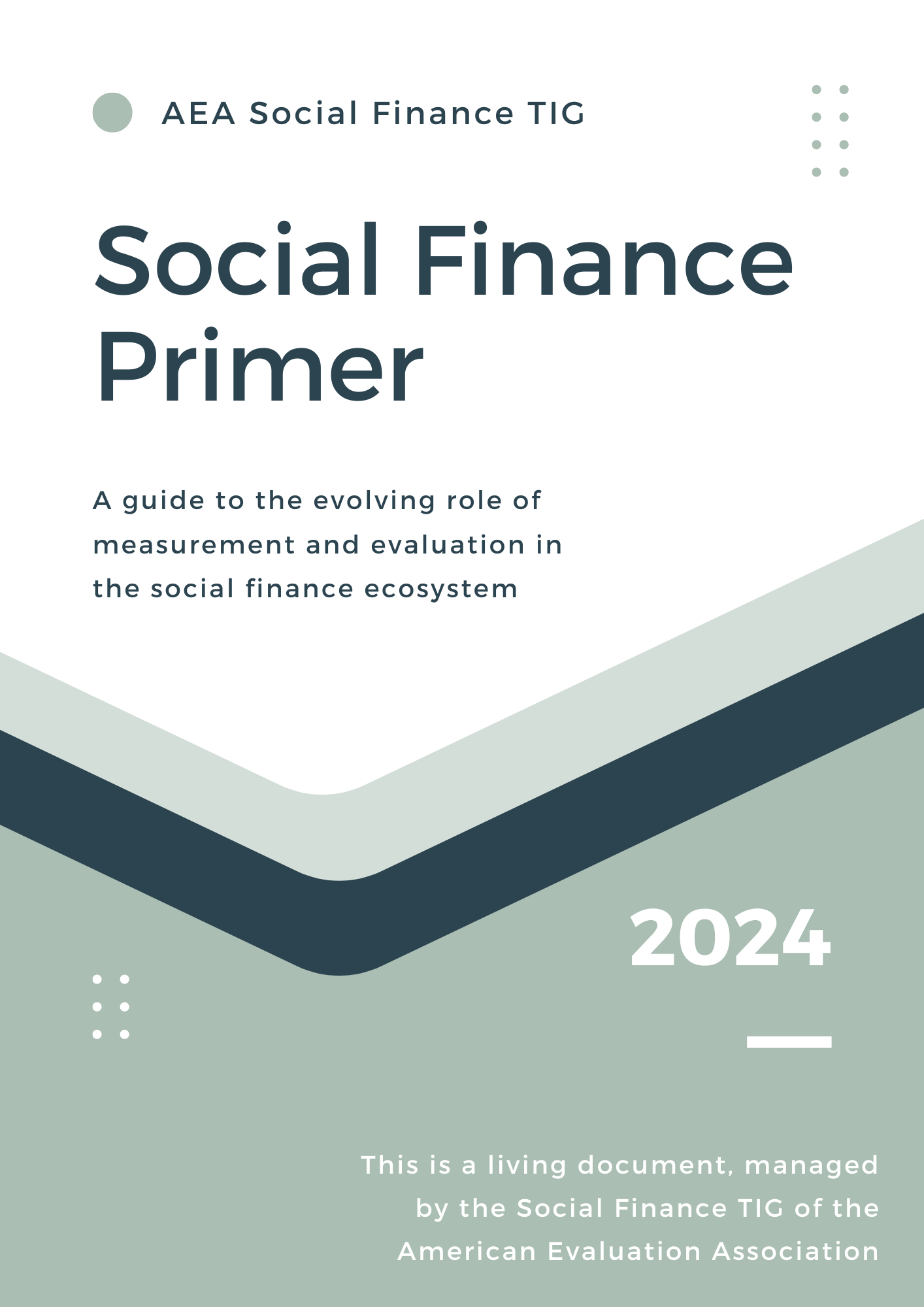 This guide is aimed at evaluators who are new to social finance and are curious to understand more about evaluators' evolving role in this ecosystem. This primer provides readers with a short overview of the field as well as links to articles and resources useful to evaluators who want to learn more about the field and the work of the Social Finance TIG.